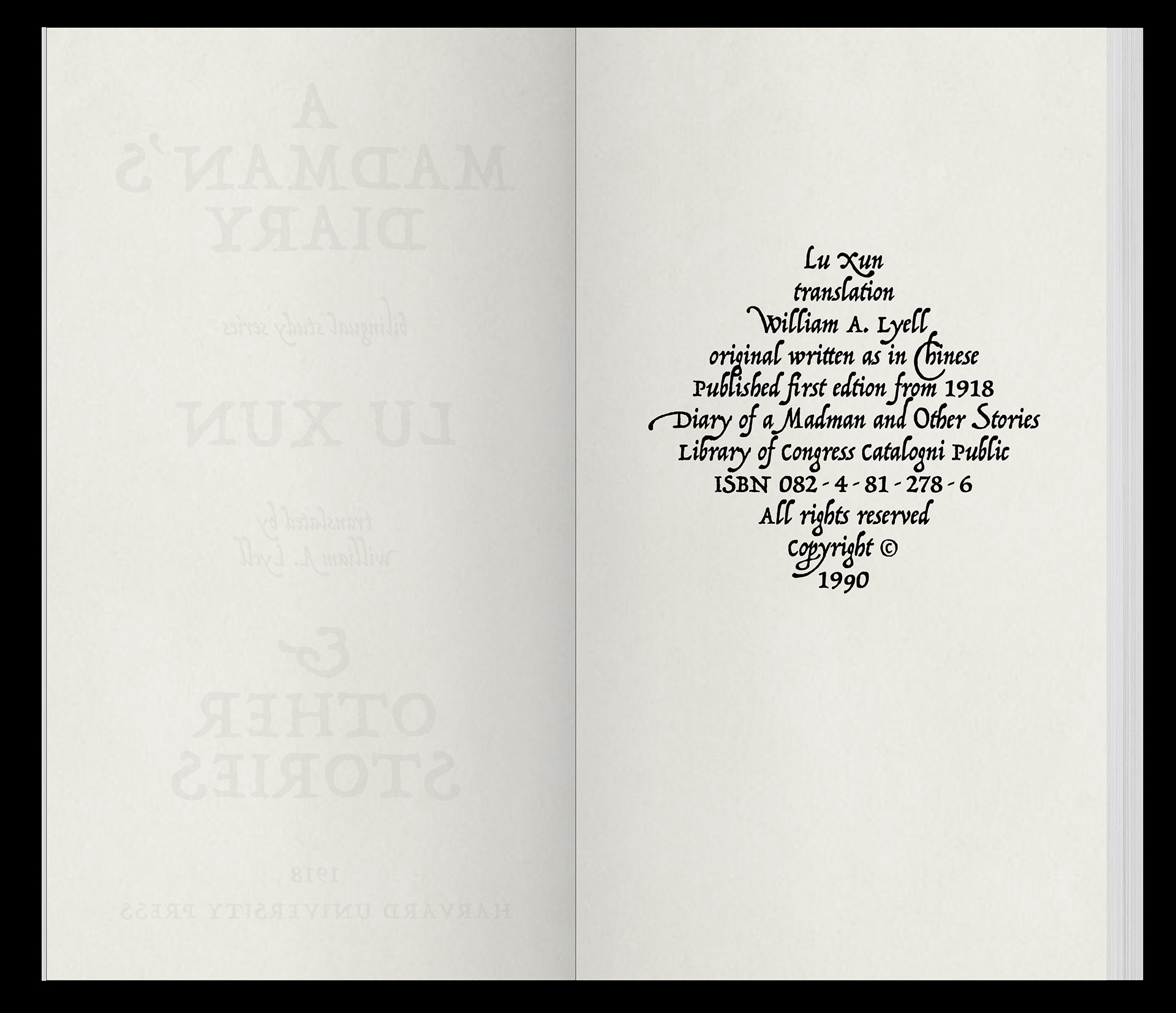Colophon for A Madman's Diary by Lu Xun (2020)